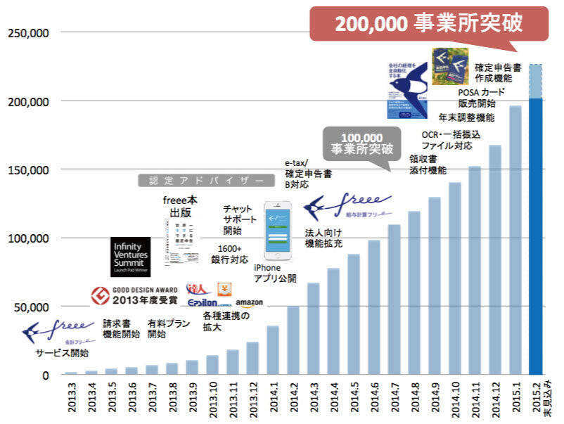 クラウド会計ソフト freee の登録事業所数が 200,000 事業所を突破。チャットなどの手厚いサポートが好評。