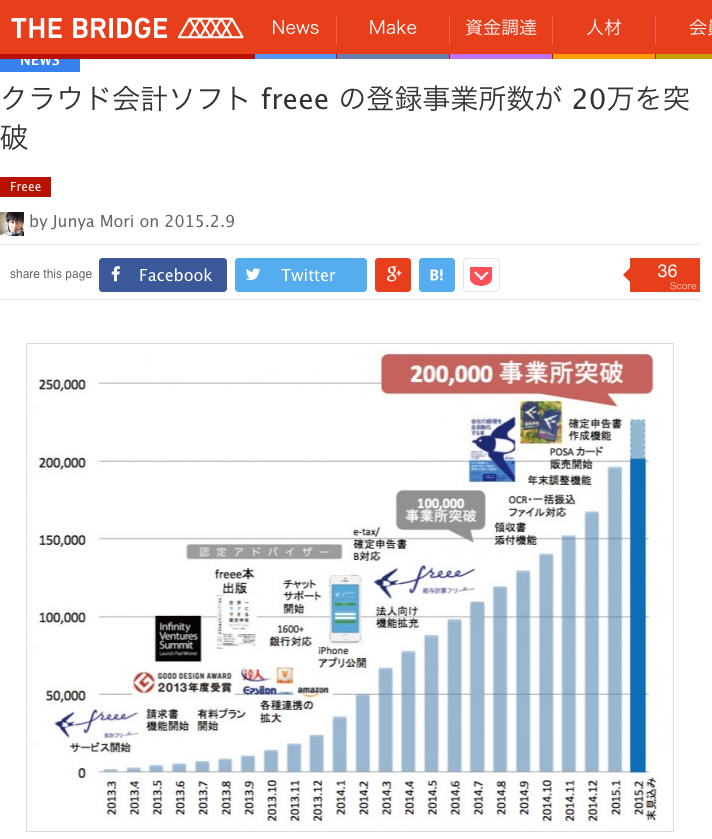 「全自動のクラウド会計ソフトfreee(フリー)」が、THE BRIDGEに掲載されました。