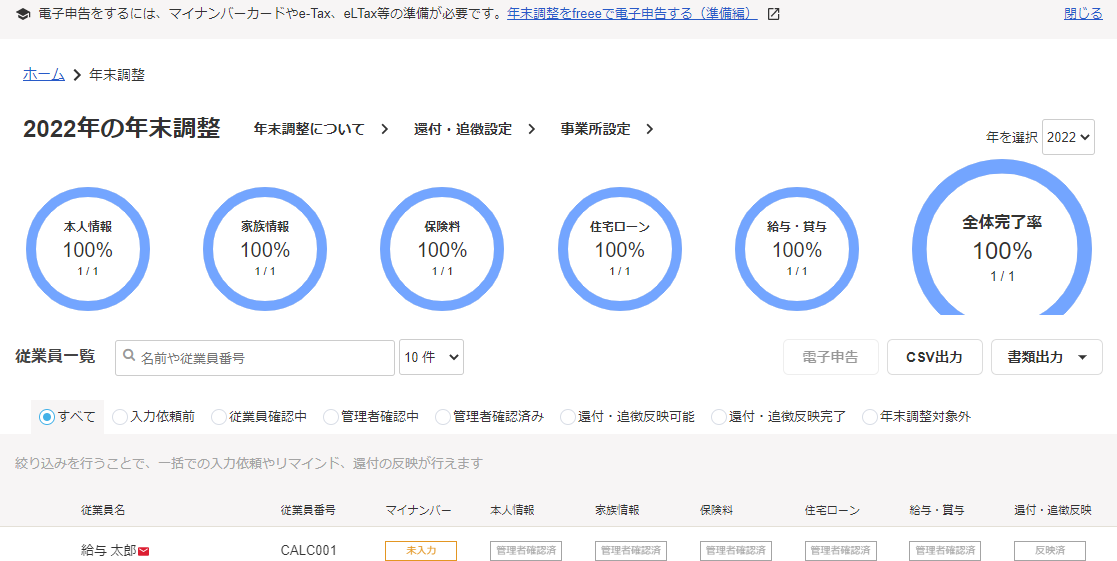 2022年の年末調整ページをオープンし、初期設定、従業員への入力依頼、管理者の従業員情報入力が利用可能になりました。