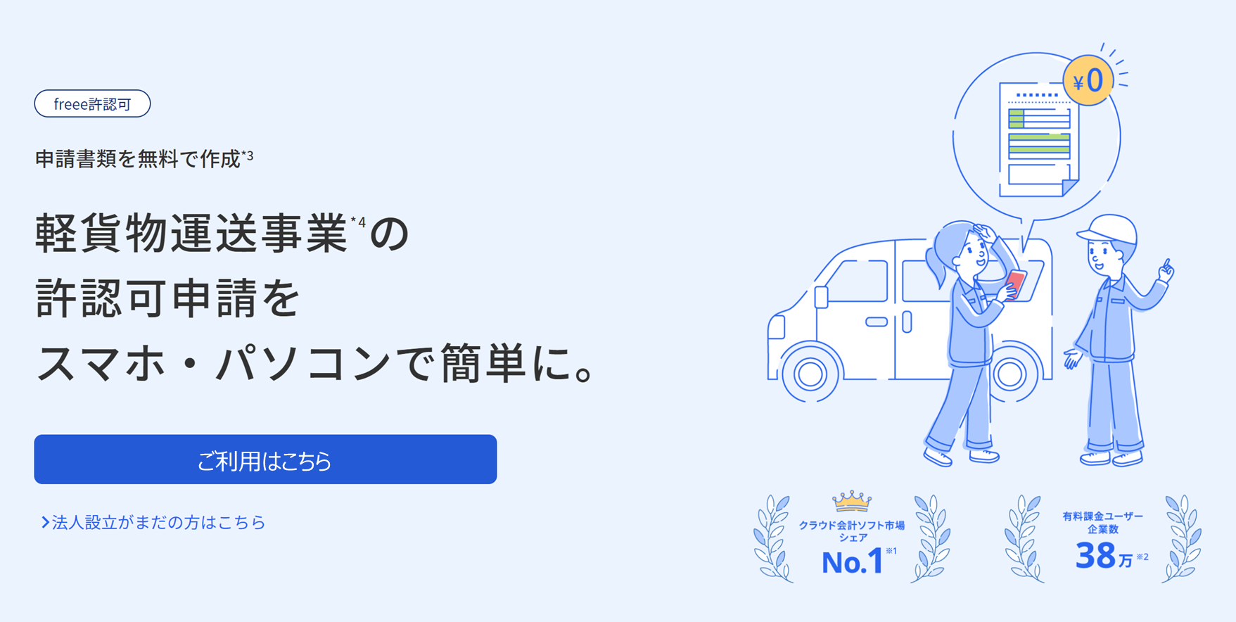 freee株式会社(本社:東京都品川区、CEO:佐々木大輔、以下「freee」)は許認可申請書類をオンラインで作成できる「freee許認可」を本日から提供開始し、軽貨物営業届に対応しています。