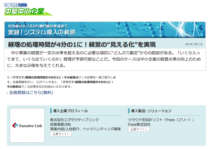 「全自動のクラウド会計ソフトfreee(フリー)」が、キーマンズネットに掲載されました。