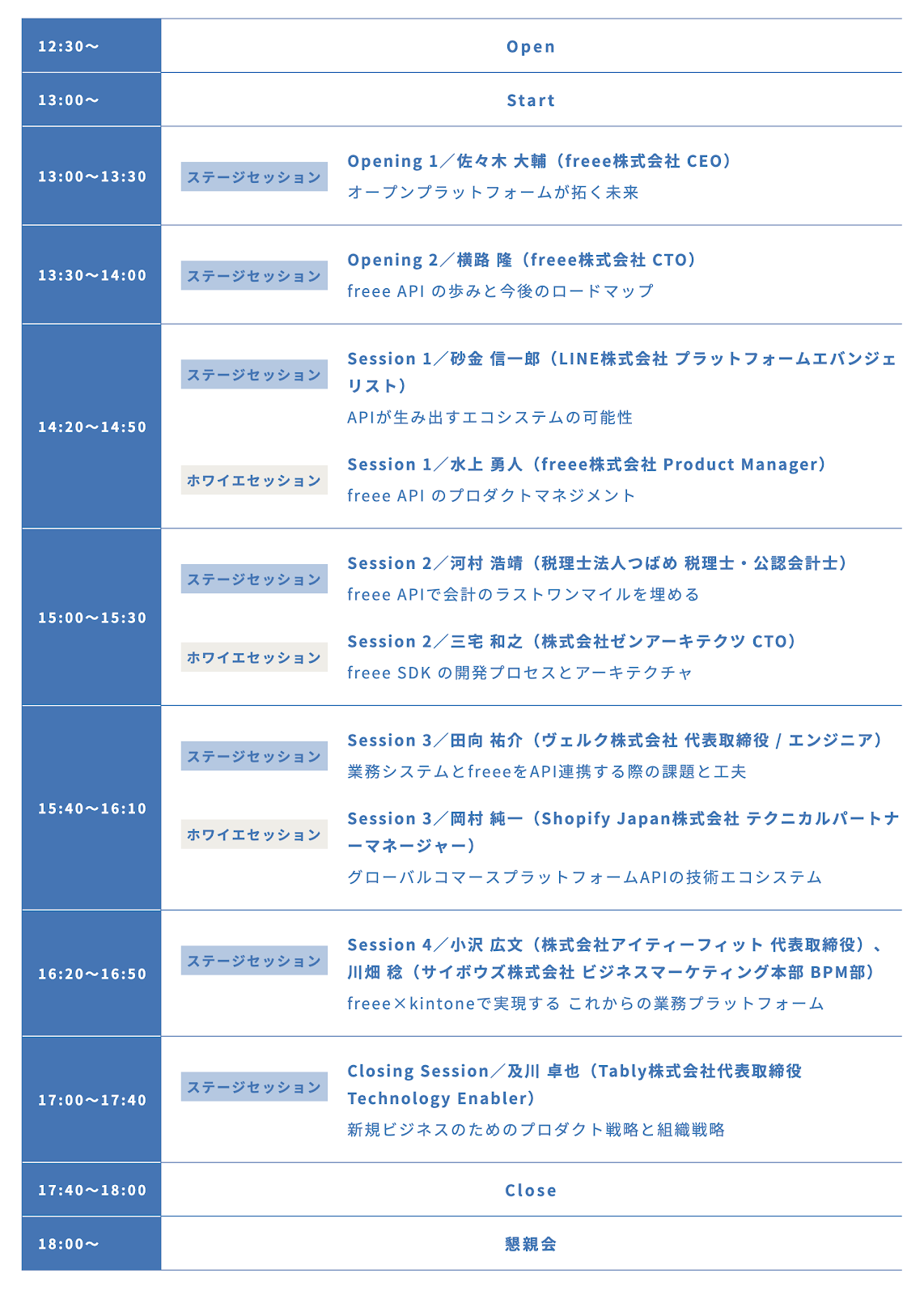 当イベントでは開発者、事業者・企画者を対象に、freee APIを軸としたオープンプラットフォーム戦略の「今」をお伝えします。オープンプラットフォームが生み出す価値や、新たな価値創造にチャレンジする方々の声、技術的な情報を発信します。
