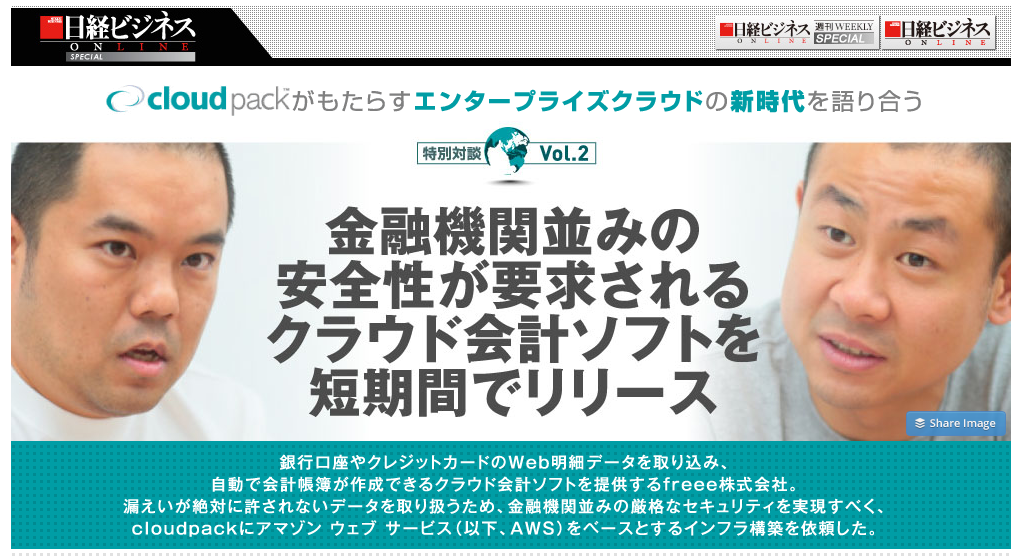 銀行口座やクレジットカードのWeb明細データを取り込み、自動で会計帳簿が作成できるクラウド会計ソフトを提供するfreee株式会社。 漏えいが絶対に許されないデータを取り扱うため、金融機関並みの厳格なセキュリティを実現すべく、cloudpackにアマゾン ウェブ サービス(以下、AWS)をベーストするインフラ構築を依頼した。