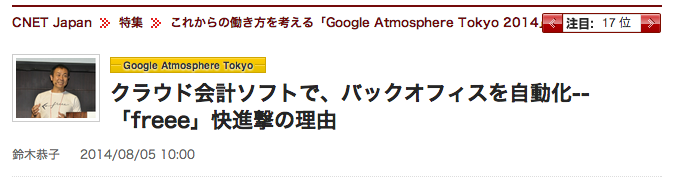 「全自動のクラウド会計ソフトfreee(フリー)」が、CNET Japanに掲載されました。