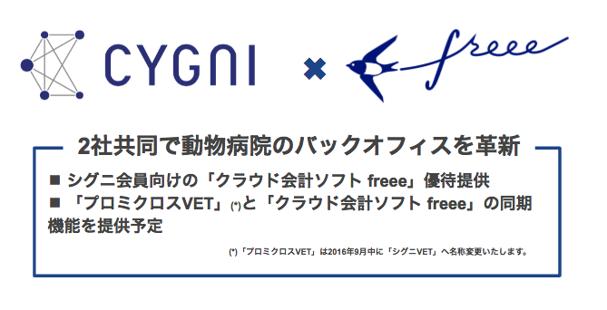 freee 株式会社(本社:東京都品川区、代表取締役:佐々木大輔、以下 freee )とシグニ株式会社(本社:東京都江東区、代表取締役社長:丹治保積、以下 シグニ)は、動物病院のバックオフィス業務効率化を共同で推進するため、協業を開始することをお知らせいたします。クラウド会計ソフトNo.1シェアを持つfreeeと全国で90%以上の動物病院に経営支援サービス「シグニプライム」を提供するシグニの協業を通じて、日本に11,000事業所以上存在する動物病院で働く方々がより本業にフォーカスできる環境作りを進めてまいります。