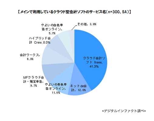 ■クラウド型利用者の4割強が「freee」を利用記事全文はこちら最も利用されているクラウド型会計ソフトはfreee。クラウド型会計ソフト利用者の4割強がメインで利用していると回答。