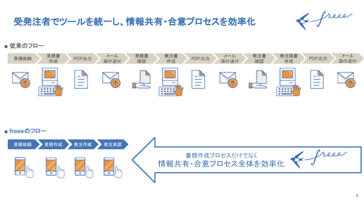 freee株式会社(本社:東京都品川区、CEO:佐々木大輔、以下「freee」)は、取引の発注者と受注者が、クラウド上で情報を共同管理することで見積・発注・請求の3つの業務を効率化する「freee 受発注サービスβ版」の提供を本日開始します。