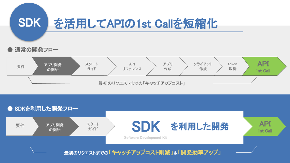 SDKを利用することで、スクラッチ開発をする必要がなくなり、開発工数の削減が可能となります。