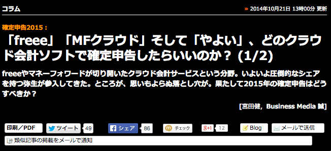 『誠 Biz. ID』に掲載:「freee」「MFクラウド」そして「やよい」、どのクラウド会計ソフトで確定申告したらいいのか?