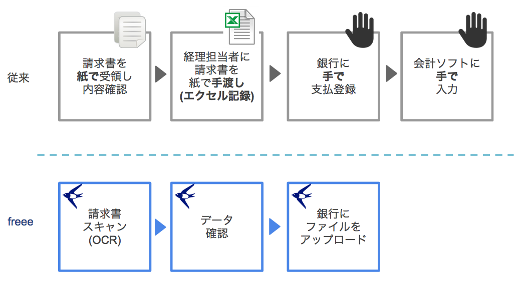 また本日、新コンセプトの発表と同時に、クラウド会計ソフト freee に OCR 機能、一括振込ファイル出力機能が追加されました。