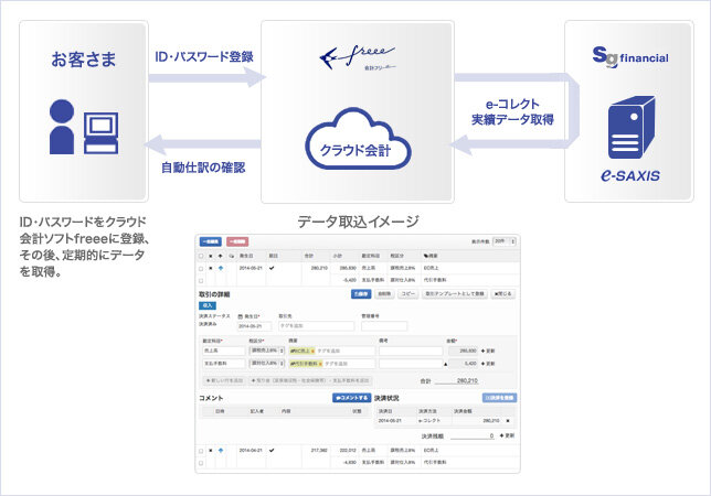 「e-コレクト」と「クラウド会計ソフトfreee」の連携イメージ