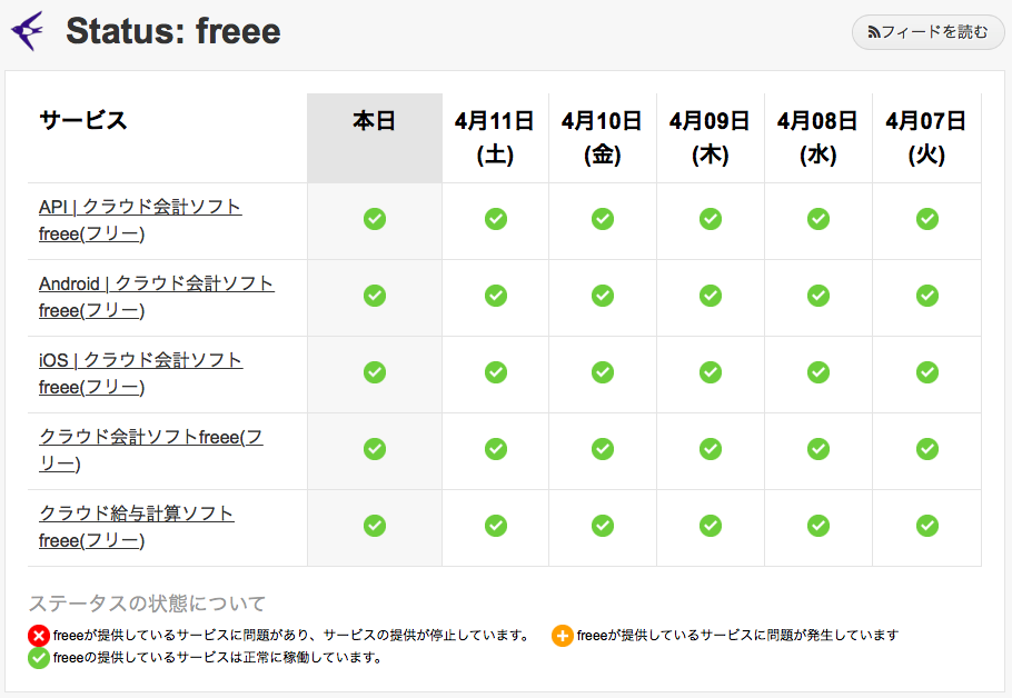 2015 年 4 月 11 日、freee はクラウド会計ソフト freee・クラウド給与計算ソフトfreee ならびに freee API などの freee 各種サービスの稼働状況を一般公開致しました。