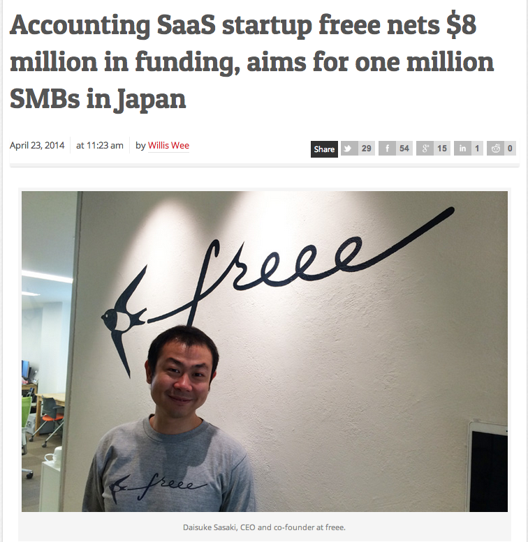 「全自動のクラウド会計ソフトfreee(フリー)」が、TECHINASIAに掲載されました。