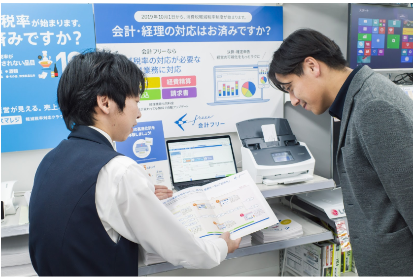 そこでこのたび、大手家電量販店のヤマダ電機店舗内で気軽に会計freeeおよび周辺機器を体験/購入ができるようになります。スキャナーを使った領収書の読み込み機能を体験することも可能です。