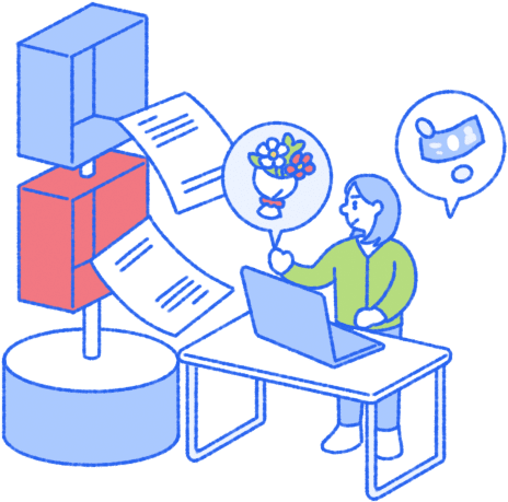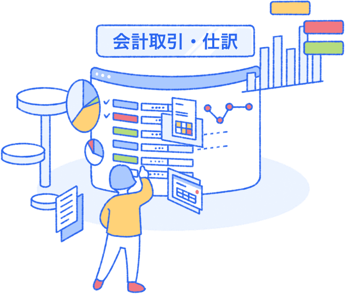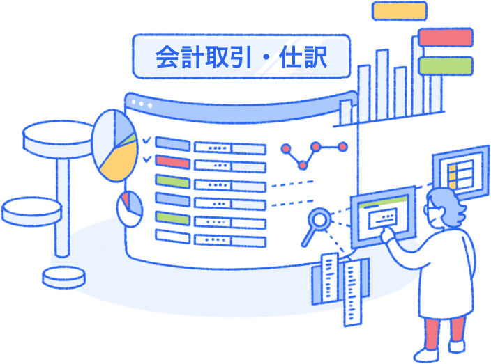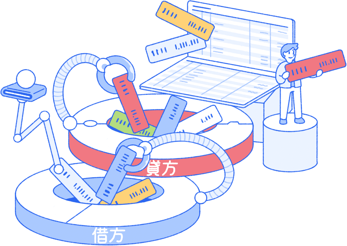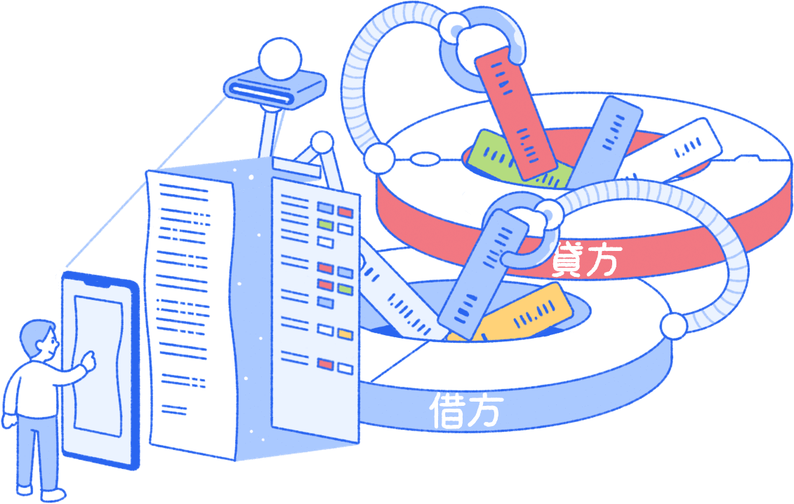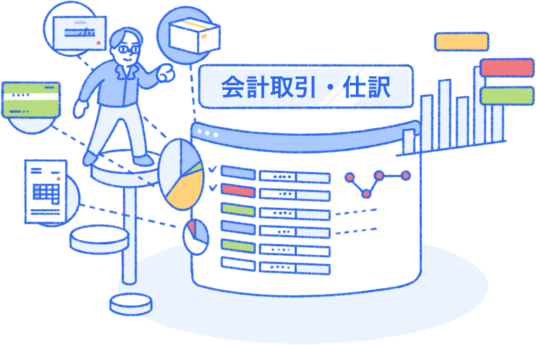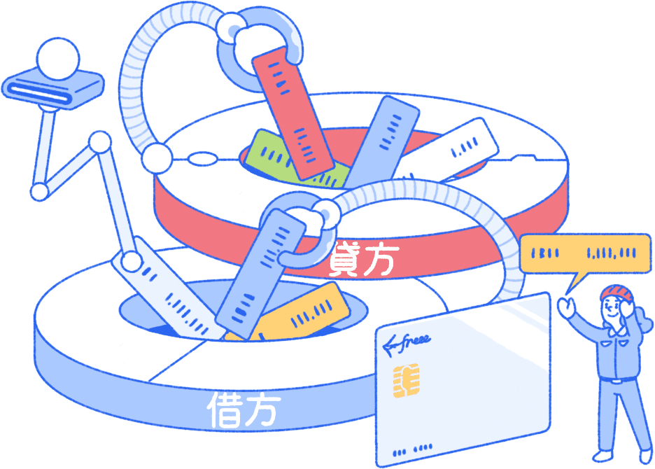 請求書の発行やクレジットカードで支払い、経費精算をしたり。おカネにまつわる日々の業務をfreeeで行えば、取引データが自動で会計帳簿に変わります。
